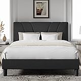Novilla Queen Bed Frame with Headboard, Bed Frame Queen Size with Wood Slats Support,Linen Upholstered Adjustable Headboard, No Box Spring Needed, Heavy Duty Feet, Easy Assembly, Dark Grey