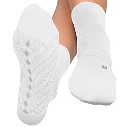 Targeted pain relief: Graduated compression with targeted cushioning reduces standing, walking, heel, and arch pain Provides foot protection and shock absorption: Strategic cushioning helps to avoid blisters and friction; reinforced heel and toe make these socks ideal for various sports activities Patented design: Provides a unique alignment system for proper foot positioning: Simply slide the marked left or right sock on the foot, center the diamond pattern, and experience the ideal compression sock with pinpoint cushioning for all-day relief Comfortable and breathable: Moisture-wicking fabric with ultra-comfortable mesh toe for ventilation; slip-proof design helps socks stay up and soothes tired feet Reinforced heel & toe: Make this sock Ideal for basketball, rucking, soccer, running, hiking, tennis, volleyball, golf, exercise gym workout, cycling or any fitness Sport Measure both your shoe size and ankle circumference: Refer to size chart; available in four sizes; Small, Medium, Large, XLarge; unisex design for men and women; quarter-length socks made of 80% durable nylon and 20% spandex; one pair