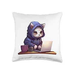 Hacker Cat Throw Pillow