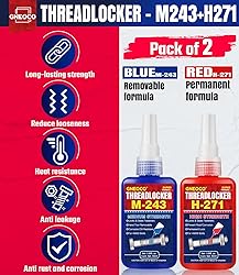 ThreadLocker Blue and Red, Thread Lock Medium High Strength Lock Tight for Nuts, Bolts, Fasteners and Metals, Anaerobic Curing Metal Glue to Prevent Loosening and Corrosion (M243 H271-100ml)