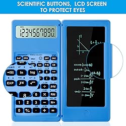 Scientific Calculators: Calculator and notepad are designed together, you can write while calculating, improve learning and work efficiency, simple operation, suitable for beginner students and science builders . Health Environmental Protection: The blue matt LCD screen is used to protect the eyes. When you are not using a calculator, you can also put it on the table as a notepad. It can write repeatedly, reduce paper consumption, environmental protection, no dust and ink, press a clear button to erase LCD notes and protect personal privacy . Portable: This handwritten calculator is only 120g, light in weight and easy to carry. Product size: 160*78*12.8mm. You can put it in your bag, pocket, or even wallet. It is a perfect choice for office calculations, construction calculations, financial calculations, accounting calculations, student calculations, home calculations, etc . Large Display: 10-digit LCD screen, 2 button batteries, can be replaced at any time without installing screws, you don't have to worry about running out of batteries . Ldeal School Supplies: Our scientific calculator is a versatile tool that is suitable for various occasions, including office, architecture, and financial calculations, etc. It is simple and easy to use, suitable for students, teachers, business people, and other users. As a gift for students during the back-to-school season, it is definitely the most practical choice.