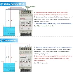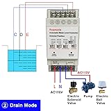 【4 Modes】Water Supply Mode,Drain Mode,Lack Water Stop Mode,Joint Mode. 【110V-120V】The water level controller can be used for the 110v solenoid valve, electric ball valve, water pump to use with the controller.The load current of the controller is 10A. 【Stainless Steel Detector with 6.5ft Wires】Corrosion, no rust, suitable for long-time use. 【Application】This pump controller can help you realize the automatic water supply and drainage of fish ponds, reservoirs, swimming pools, and water tanks. 【Noitce】Before installation, please make sure you have electrical knowledge. If you have questions about product use, please contact us.