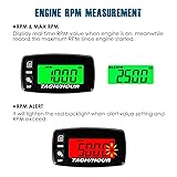 EASY BATTERY REPLACEMENT ---- In stead of insert in battery cartridge, an new design for mounting in battery cover will be more convenient to replace the battery and prevented the battery dropping. HOUR METER ----Record the total running hours of gasoline engine powered machine;You also can view the hours vaue in a single working period; It perform the regular maintenance task for engine components and remind the due time. TOT/JOB Hours range: 0 to 99,999 hours;SVC maintenance hours range: 0 to 200 hours. RPM METER ---- Display real-time RPM values when engine is on, help to carlibrate the RPM accuracy by 9 programmable engine firing patterns(For 12 types of 2/4 gasoline engines), also display the maximum RPM value since engine started; It alert the RPM exceed status based on preset RPM alert value. RPM measurement range: 0 to 20,000 RPM,RPM alert range: 1000 to 20,000RPM. PRODUCT INSTALLATION ---- Easy to mount it by stick-on, screw-on mounting at any proper place; Receipt of engine signal by one wire connection(5-8 cirlces wrapping) with spark plug(inductive cable length:1.75meters/68.80 inches). OTHER FEATURES ---- 2 Backlights display: the default green backlight can be used at night or dim place,which can be set as always on, always off and auto(sleeping mode),the red backlight alert the RPM exceed; LCD display shutdown;Built-in replaceable battery CR2032 210mAh;Reliable technical support and aftersales service(2 years).