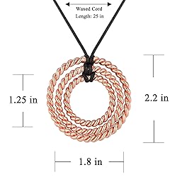 Tensor Rings Copper, 3 Ring Cubit Tensor Pendant, Tensor Rings Set Trio Ra-Mu Viking Sacred Continent Cubit 404Mhz, 443Mhz, 68Mhz Amulet Pendant Energizing Necklace Copper Torus Energy
