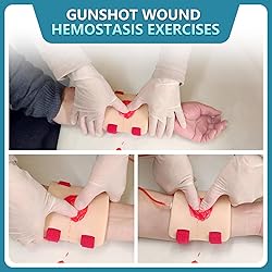 【Be a great deal】This kit includes two bleeding models, as well as all the training materials you need.You simply won't find a better value at any price. 【Simulator 1】The laceration wound packing trainer simulates the realistic appearance and characteristics of a knife wound, creating lifelike training scenarios.The deepest part of the wound is about 0.6 inches.The product can be used for practice in stopping bleeding from wounds, practicing wound bandaging, and practicing wound suturing. 【Simulator 2】The bullet wound packing trainer replicates the realistic appearance of a bullet wound, creating authentic training scenarios.The deepest part of the wound is about 0.6 inches.The product can be used for practice in stopping bleeding from wounds, and practicing wound bandaging. 【Wearable Design】With an adjustable velcro band, the wound packing trainer can be worn on mannequins or other models, simulating various wound types for practicing bleed control and wound care skills. 【Comprehensive Training】The stop bleeding training kit includes essential components for wound treatment practice. By using the accompanying 1-liter water reservoir bag, you can pump blood simulant into the wounds to simulate realistic bleeding. Practice the procedures for cleaning and dressing wounds in emergency situations with tourniquet. 【Note】Due to shipping restrictions and safety protocols, we are unable to include the red powder with your order. We kindly recommend red ink as a safe, convenient and effective alternative for your needs.