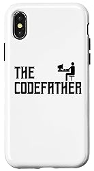 The Codefather gift idea for every developer, hacker, coder and programmer that do programming, coding, debugging table. If you study information technology or science, tell them about the bits and bytes. The Codefather Coding Coder Developer Computer Nerd is a perfect gift for everyone who loves coding and developing new computer langues. Perfect as a birthday or christmas gift for an engineer, programmer or someone who loves technology. Two-part protective case made from a premium scratch-resistant polycarbonate shell and shock absorbent TPU liner protects against drops Printed in the USA Easy installation