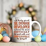 - Sql Database Developer 11oz White Ceramic Mug: Monizilucky creates unique funny coffee mugs which make great Birthday gift ideas for men, Birthday gift ideas for women, Valentine’s Day gift ideas, Mother’s Day gift ideas for Mom from Daughter or Son, Father’s Day gift ideas for Dad, Anniversary gift and Christmas present ideas for him or her. This funny coffee mug is made out of high quality ceramic. If you're shopping for a gift, you've found the one. Have a great gift delivered to their door, on-time in a nice gift box. This is the perfect mug for you or for someone you want to bring a smile to. A perfect size mug you can drink tea, soup or coffee out of. ● Printed in the USA ● Worldwide shipping ● Print type: Sublimation printing ● Material: Ceramic ● Color: White ● Sizing: 11oz ● Printed on both sides.