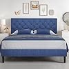 HOMBCK Queen Bed Frame with Button Tufted Headboard, Blue Upholstered Platform Bed Frame Bed, Soft Fabric/Wood Slats Support/No Box Spring Needed, Easy Assembly, Blue