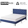 - 【Fit Multiple Mattress】: The blue queen bed frame is equipped with adjustable headboard. The soft headboard has 3 adjustable modes, which can be suitable for many types of mattress. Recommended mattress size is 8-12”
