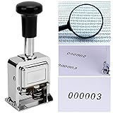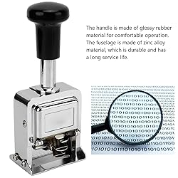 - 1. Material: The body is made of zinc alloy shell, which is and has a long service life. 2. Comfortable: The handle adopts a glossy design and rubber material, which is comfortable to operate. 3. Clear: Codes are clear and clean for fast, repeatable punching. Used in banking, accounting, etc. 4. Automatic Ink Return: Convenient and trouble , it can automatically return ink to the felt, and it can be printed on dry times once filled with ink. 5. Suitability: Ideal for document identification numbers, date and number stamps, serial number stamps, inspection stamps, ticket stamps, etc. Specification: Item Type: Number Stamp Material: Zinc Alloy Uses: Banking, Accounting Number of Digits: 6 Digits Product Size: Approx.6.3 x 3.8 x 14cm / 2.5 x 1.5 x 5.5in Package List: 1 x Number Stamp 1 x Ink 1 x Dial Stick 2 x Number Pad