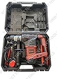 Perfect for tough tasks such as demolishing brickwork, removing plaster, taking off tiles and digging out old grouting. The drill is powered by an impressive 14 amp motor, making it suitable for drilling into materials including masonry, wood and metal. Rotary Hammer Drill - Perfect for tough tasks such as demolishing brickwork, removing plaster, taking off tiles and digging out old grouting. The drill is powered by an impressive motor, making it suitable for drilling into materials including masonry, wood and metal Variable Speed - With a no load speed 200 - 1000 RPM and variable speed trigger, you'll always remain in total control of your tool, whatever the job at hand. For added ease of use, the drill also includes an anti-vibration mechanism, and auxiliary handle Flexible Swivel Handle - Adjustable 360 degree side handle and ergonomic D-grip handle for comfort and control. Rotating swivel lock handle can be detached or re-positioned for better utilization Impact Resistant Storage - Heavy Duty impact resistant storage case provides additional protection for tools. Blow-molded housing designed with handles to offer easy transportation and reliable storage of equipment Various Drilling Modes and Bits - (3) SDS drills, (1) flat chisel and (1) point chisel, and three modes - hammer only, hammer drill and drill only for you to select according to the materials and the working place you are located at.