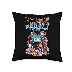 Ideal for software engineers and developers who appreciate humorous and relatable designs, showcasing their coder spirit in a fun and creative way. Suitable for various settings and occasions. Embrace your programmer lifestyle with a touch of humor. This clever design is perfect for software developers, coders, and anyone involved in the tech world, highlighting the fun side of coding. 100% spun-polyester fabric Double-sided print Filled with 100% polyester and sewn closed Individually cut and sewn by hand Spot clean/dry clean only