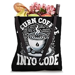 Show off your love for all things tech with this fun, geeky design. Whether you're a seasoned developer or just starting out, this design is perfect for you. Ideal for software developers, coders, and tech enthusiasts. Embrace your inner nerd and let the world know you're passionate about programming and technology. 16” x 16” bag with two 14” long and 1” wide black cotton webbing strap handles. Made of a lightweight, spun polyester canvas-like fabric. All seams and stress points are double-stitched for durability, and the reinforced bottom flattens to fit more items and hold larger objects. Spot clean/dry clean only.