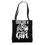 Show off your love for all things tech with this fun, geeky design. Whether you're a seasoned developer or just starting out, this design is perfect for you. Ideal for software developers, coders, and tech enthusiasts. Embrace your inner nerd and let the world know you're passionate about programming and technology. 16” x 16” bag with two 14” long and 1” wide black cotton webbing strap handles. Made of a lightweight, spun polyester canvas-like fabric. All seams and stress points are double-stitched for durability, and the reinforced bottom flattens to fit more items and hold larger objects. Spot clean/dry clean only.