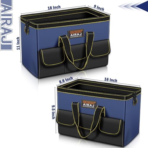 Tool Bag 2-Pack Set | AIRAJ 18" & 16" Portable Tool Storage Bag | Wide Mouth Tool Bags for Men and Women | Small Tool Tote | Tool Organizer for Home Repairs,Garage Storage,Professional Work | Tool Box