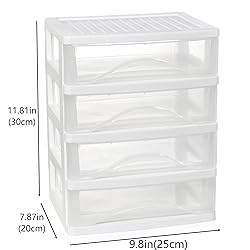 - Multipurpose organizer: Gonice 4 drawer plastic storage is perfect for your home, office, small business, classroom, etc! You can store your tools, documents and other supplies, and the clear drawer can see the contents