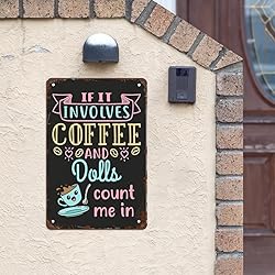 patio wall decor If It Involves Coffee and Dolls Count Me In Cute Doll Collector vintage signs Barn Bathroom Wall Decor Retro Metal Sign for Home,Man Cave Funny Quotes & Life Inspiration 8X12inch