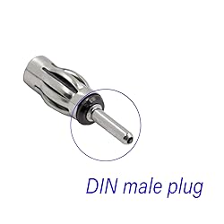 - Product Details:Product name: DIN male car radio antenna connector adapter 50 ohm Connector type: DIN male Body Material: Copper nickel plating Black cap material: PVC sleeve Body style: DIN plug lantern shape Color: Silver and black Impedance: 50 ohm Applications: Used for car radio antennas, RG58 RG174 coaxial cables, CB radio, CD DVD and so on. Package: 3 x DIN plug car antenna connector (Weight: 10.5g)
