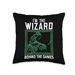 "I'm the wizard behind the Games" For computer programmers, game developers who love coding, this funny wizard in a circuit board design is a must-have for anyone who appreciates programming humor and game development. For the indie game developer who loves coding, this humorous design with a wizard in circuit board style is perfect for showing off your programming skills. 100% spun-polyester fabric Double-sided print Filled with 100% polyester and sewn closed Individually cut and sewn by hand Spot clean/dry clean only