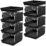 Large Capacity: This stackable storage bins features a 4-tier design, with each tray measuring 13.8"D x 11.8"W x 2.4"H. Fully assembled, it measures 13.8"D x 11.8"W x 28.3"H and supports up to 26 lbs. The front opening design allows easy visibility and quick access to stored items Versatile Storage Solution: These stackable baskets are ideal for organizing a wide range of items such as toys, clothes, snacks, toiletries, and other daily essentials. It is suitable for a variety of scenes, including the RV, bedroom, closet, kitchen, food pantry, living room, office, and bathroom Stackable Design: Customize your storage needs with adjustable tiers that stack into 4, 3, or 2 layers to fit your space. The stable stacking structure ensures a secure fit between layers, maximizing vertical space, while the open top tray allows flexible height storage and easy access Easy Assembly: These stacking storage bins assemble in minutes with no tools required. Simply follow the included instructions for quick, hassle-free setup and enjoy organized storage without complicated installation Stable and Sturdy: The stacking baskets for shelves are made of high-quality PP plastic and easy to clean with a damp cloth. The metal pole is made of waterproof and rust-proof stainless steel. Designed for long-lasting daily use, providing reliable storage that withstands wear and tear