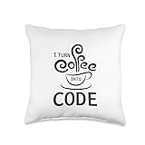 • Funny design - I turn coffee into code. A new variant of eat sleep code repeat. This funny design shows that you are always coding, hacking, and changing food and coffee into code. The best design for friends and family events whether it's birthday, friendship day, parent's day, women's day, or father's day. This Funny Coffee Into Code Software Coder Programmer Programming item is designed by Programmer Designs by Fasaza.