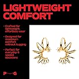 BOLD, MODERN DESIGN: Our stetement spike gold hoop earrings feature a stunning moon eclipse motif crafted from lustrous 22K gold plating on 316L stainless steel, adding a touch of glamour to any outfit. SOPHISTICATED AND AVANT-GARDE: Our cool spike gold hoop earrings are designed for those who refuse to settle for simple and boring, embodying elegance and individuality. UNIQUE HAUTE COUTURE INSPIRATION: Each collection is inspired by haute couture, reflecting the latest fashion trends and artistic in fluences. HYPOALLERGENIC AND NICKEL FREE: Our chunky spike hoops are safe for sensitive ears, ensuring comfort all day long LIGHTWEIGHT COMFORT: Designed with a lightweight construction, these edgy spike hoop earrings offer comfortable wear throughout the day. US-BASED BRAND – WOMEN-OWNED BUSINESS PUMP UP THE GEM is a proud women-owned business in the USA. Each piece is designed to empower you, combining bold style with elegance. Crafted with love and care, our jewelry brings Haute Couture fashion to you.