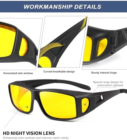 KALIYADI Night-Vision-Glasses Fit-Over-Glasses Wrap-Around Glasses: Anti Glare Night Driving Glasses for men women HD Lens