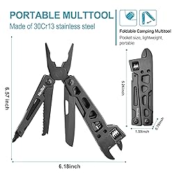9 in 1 MULTITOOL: NexTool cleverly combines the adjustable wrench and multi-functional pliers in one tool, it features as needlenose pliers, standard pliers, wire cutters, pocket knife, wood saw, phillips&flathead screwdriver. This adjustable wrench multitool is one hand assceesible, with 9 kinds of practical functions, it is equal to a set of intergrated toolbox, easy to deal with the need of wrenching, twisting, screwing, cutting, peeling, sawing and etc. in daily life. FLEXIBLE ADJUSTMENT & WIDE JAW OPENING: Flexible adjusting knob, simple operation, flexible adjustment without stuck. Wide jaw capacity, max jaw opening 20mm, torque up to 40N·m. This wrench multitool fits a wide range of fastener sizes, supports larger nuts, bolts, and pipe, suitable for nut disassembly and assembly of various equipment, like replace a car battery, assembled a table, and fixed your lawn mower. FOLDABLE & PORTABLE: Closure size: 133x40.5x20mm, weighs only 317 grams, making this multi tool convenient to carry in your pocket. Folding design saves space, it comes with pocket clip and a high quality nylon pouch, can be put in a bag or hung on the waist for far distance carrying after folding. Assembly screwdriver bits lock on the back side, would not be too loose to lose easily. Perfect for used for camping, hiking, backpacking hunting, fishing, outdoor and DIY activities. HIGH HARDNESS, ANTI-RUST, HIGH-CHIC: This multitool is made of 30Cr13 stainless steel, black oxide finish garantee high grade hardness, strength and wear resistance. Being solid and durable, pliers can clamp tightly for good cuting, twisting, and jaws on wrench are very strong and have stood up to screwing different size nuts frequently. Perfect for home appliance maintenance, electrical maintenance and general assembly tasks. PACKAGE & AFTER-SALE GUTANTEE: Package contains: 9 in 1 wrench multitool * 1, nylon pouch *1. Worry-free purchase, you can return and get a refund if unsatisfied with purchase, NO RISK to try. Any questions for NexTool adjustable wrench multitool usage or quality issues, please do not hesitate to contact us, NexTool Customer Service always here for your better soluction and buying experience.