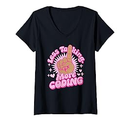 Womens Black Women Coding Writing Code PhD Less Talking Hot Pink V-Neck T-Shirt