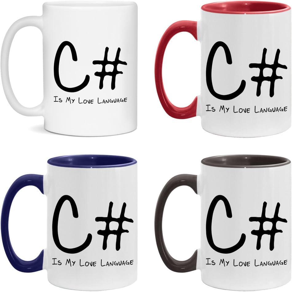C# Is My Love Language Ceramic Mug, Software Engineer Coffee Cup, Computer Science Programming Language, Coder Nerdy Gift Mug - White/Black 11oz