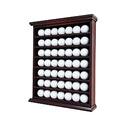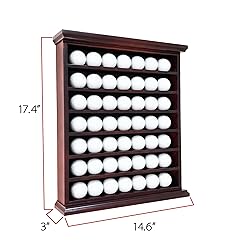 - The ARRAWIS Golf Ball Display Case is the perfect solution for showcasing your prized golf ball collection. With its custom green felt background and sleek black finish, this display case not only protects your golf balls but also enhances their appearance. The compact yet spacious design measures 15 inches wide, 17.5 inches high, and 2.25 inches deep, with an interior width of 13 inches and a depth of 2.1 inches. The dimples on the shelves keep your golf balls securely in place, preventing them from rolling. The open rack design without a door allows for easy access, while metal brackets on the back make wall mounting simple and secure. Best of all, it comes in one piece, requiring no assembly. Elevate your golf ball display with the ARRAWIS Golf Ball Display Case.