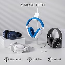 - Redragon H878 3-Mode Wireless Blue Lighting Gaming Headset - Lightweight - 7.1 Surround Sound - 40MM Drivers - Detachable Microphone - Multi Platforms for PC, PS5/4/3, Switch, Mobile, White&Gray