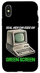 Software developer vintage computer, hard at work coding, captures the essence of a funny and passionate programmer. With short sleeves and practical accessories, highlights the joys of engineering and programming before graphical user interfaces. It’s a great choice for a birthday, Christmas, or Father’s Day present, making the perfect surprise for any dedicated real man green screen coder. This creative design reflects the true spirit of real men nerd lifestyle and their engineering passion. Two-part protective case made from a premium scratch-resistant polycarbonate shell and shock absorbent TPU liner protects against drops Printed in the USA Easy installation