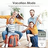 Energy and Money Saving: automatically turns on and off lights, fans and other home appliances as needed to conserve electricity and save on your energy bills Flexible Scheduling: comes with up to 10 groups of automatic on-off timer programs and each timer program is 24 hour and weekly programmable Anti-theft: features a random mode for lights to go on and off at varying times to make your house look occupied while you're away from home to mystify burglars User Friendly: large screen for a clearer view of digits; built-in battery to memorize your programs during power outages; completely silent for home use Buy with Confidence: each timer is backed by a 2-year limited warranty and lifetime support by our friendly customer service team