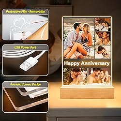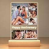 Jkolalin Custom Picture Frames with Photo, Customized Picture Frame with Night Light, Personalized Photo Frame, Personalized Anniversary Birthday Valentines Day Gifts for Women Men Her Him Couple