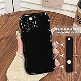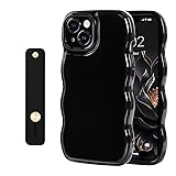 NITITOP Compatible with iPhone 14 Plus Case Cute Simple Wave Design Stylish Wavy Curly Frame with Wrist Adjustable Hand Strap Kickstand Grip Holder Soft Silicone Protective Cover - Black