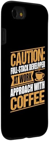 - Funny full-stack dev graphic for men and women featuring the phrase "Caution Full-Stack Developer Approach With Coffee".