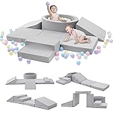 Multi-functional Design: The foam climbing set includes a ball pit, two triangular inclined planes, staircase, and foldable square cube, allowing for various combinations for kids or toddlers to safely climb with different levels of difficulty Premium Quality Foam:Crafted with high-quality, soft foam that provides excellent support and cushioning for toddlers aged 1-3 during play. Encourages Creativity:Through crawling and exploration, toddlers can improve their hand-eye coordination, balance, and spatial awareness, contributing to their physical development. Vacuum Compressed:Smartly shipped vacuum compressed to reduce shipping volume and facilitate transportation. NOTES:The ball pit in this play set does not include balls; Allow up to 48 hours for the playset to fully recover its shape and dimensions. If needed, you can use a hair dryer in cold air mode to assist the recovery process.