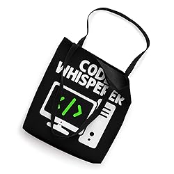 If you are a programmer, developer and coder, get this CODE WHISPERER design for men, women, boys, girls, grandpa, dad, mother, sister, father, youth teen, son, wife, mom, uncle, grandma. Cool clothes apparel for programming, engineering and coding geeks. Funny clothing gift idea for nerd kids, toddler who are computer whisperer, tech gaming enthusiasts and computer science fans. Cute birthday, Christmas novelty present for coders, programmers, technician, software engineer along with computer themed stuff. 16” x 16” bag with two 14” long and 1” wide black cotton webbing strap handles. Made of a lightweight, spun polyester canvas-like fabric. All seams and stress points are double-stitched for durability, and the reinforced bottom flattens to fit more items and hold larger objects. Spot clean/dry clean only.