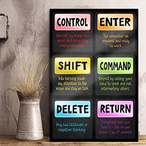 Jinniee Control enter PC Poster Computer Science Classroom Poster, Stem Technology Education Chart, Keyboard Coding Computer Lab Wall Art For Kids Class, Digital Keyboarding Posters