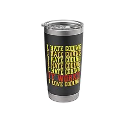 Funny coder IT software developer clothing that says I Hate Coding It Works I Love Coding. Dual wall insulated: keeps beverages hot or cold Stainless Steel, BPA Free Leak proof lid with clear slider