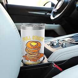 Are you a full stack developer who loves pancakes? Looking for a programmer outfit to keep your code flowing? Show your programming skills with this Full Stack Developer programmer design! For skilled IT administrator who likes pancakes. Coding Geek Gift. Or perhaps you're on the lookout for great software developer gifts. Why not surprise your favorite programmer with a funny coder graphic? This tee is perfect for anyone who is passionate about programming and pancakes. Pancake Computer Nerd Gift Idea. Dual wall insulated: keeps beverages hot or cold Stainless Steel, BPA Free Leak proof lid with clear slider