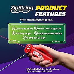 - Elevate your ZipString experience with our replacement strings, designed to enhance play with vibrant, glowing options. From the creators behind ZipString, as seen on Shark Tank, these UV-reactive strings transform your ZipString into a mesmerizing lasso loop that shines in the dark. Their compact size makes them an ideal travel companion, perfect for use with ZipString and Luma, providing endless entertainment on the go. Designed for easy handling, these replacement strings are crafted from safe, durable materials, offering seamless compatibility with your ZipString toys. Suitable for ages 4 and up, they ensure worry-free, exciting play for kids and adults alike. Our set includes three bold color combinations—black and yellow, pink and green, and pink-green-blue—each creating mind-bending, vibrant displays in motion. Whether you're looping, spinning, or creating glowing patterns, these strings promise endless entertainment. Choose glow-in-the-dark options to keep the adventure going long after the sun sets. Creativity knows no bounds with a multitude of games and tricks. Master the Bow & Arrow, creating the illusion of an archer shooting a glowing arrow. Twist and turn with The Corkscrew, crafting spirals of light. Get artistic with The Scribble, drawing luminous designs in the air. Test your reflexes with String Touch, challenging friends to a game of speed and precision.