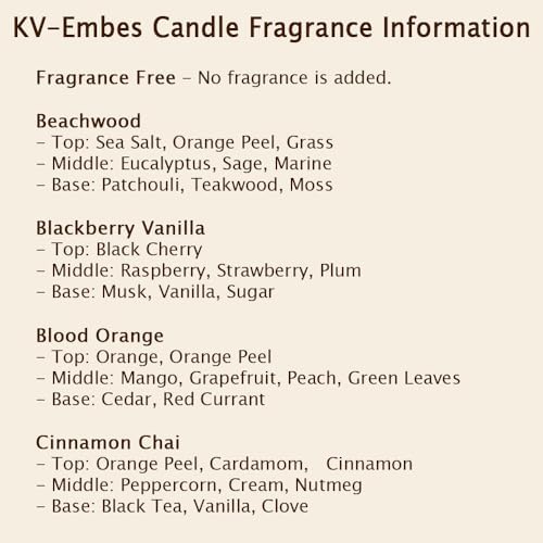 Candle Fragrance Information+ Beachwood: Top: Sea Salt, Orange Peel, Grass | Middle: Eucalyptus, Sage, Marine | Base: Patchouli, Teakwood, Moss+ Blackberry Vanilla: Top: Black Cherry | Middle: Raspberry, Strawberry, Plum | Base: Musk, Vanilla, Sugar+ Blood Orange: Top: Orange, Orange Peel | Middle: Mango, Grapefruit, Peach, Green Leaves | Base: Cedar, Red Currant+ Cinnamon Chai: Top: Orange Peel, Cardamom, Cinnamon | Middle: Peppercorn, Cream, Nutmeg | Base: Black Tea, Vanilla, Clove+ Sage & Cypress: Top: Bergamot, Spruce | Middle: Cypress, Sage | Base: Palo Santo, Patchouli, Dark Musk, Smoke+ Fragrance Free: No fragrance is added.+ Fallen Leaves: Top: Apple, Cinnamon, Clove | Middle: Pine, Eucalyptus, Juniper, Cranberry | Base: Cedar+ Coconut Soleil: Top: Amaretto, Pineapple | Middle: Banana, Coconut, Coconut Milk | Base: Vanilla, Tonka BeanCandle Safety+ Before burning, always trim a cotton wick to 1/4" and 1/8" - 3/16" for a wood wick.+ Keep the wax pool clear of wick trimmings, matches, and debris at all times.+ Keep within sight.+ Keep away from flammable objects.+ Keep away from children and pets.Cancellation, Returns, and Replacement Orders+ Since our products are made using a print-on-demand model, each order is crafted manually and uniquely based on customer specifications. Therefore, we only accept order cancellations before the production process begins, and we do not accept returns.+ We will offer a replacement order or a full refund if the product delivered does not match the description, is damaged during shipping, or is lost in transit.