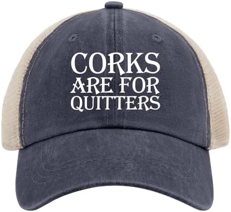 Corks Are For Quitters Hat Trucker Hat Women Trendy Mesh Cap for Men and Women Breathable Cap for Summer, Vintage Trucker Hat Washed Denim Hats Unisex Snapback Adjustable Hat