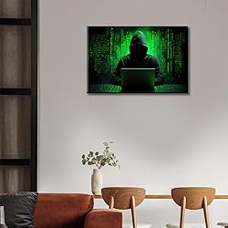Cybersecurity and Hacking Concept Pictures Wall Art Wall Decor Posters 1 Panel Digital Intrusion Hacker Unleashing Code Chaos Canvas Artwork Wooden Frame Ready to Hang (12" Wx18 H)