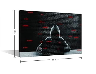 Rebotipy Hacker Hacking Data System Wall Art for Bedroom 1 Panels Cyber Attack Canvas Painting Digital Network Wall Art for Living Room Contemporary Home Decor Stretched on Wooden Frame (12" Wx18 H)