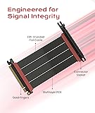 Verified Compatibility — Built for vertical GPU mount and standard layouts across towers, SFF/ITX sandwich cases, open benches, and water-cooled rigs. Fully backward-compatible with PCIe 4.0 and validated on ASUS WS WRX80SE WiFi II and WRX90E Gen5 boards. Ready for next-gen cards like RTX 5090 and RX 9070. Use this PCIe 5.0 riser cable to place the GPU exactly where airflow and aesthetics demand—without giving up stability. Gen5 x16 Performance & Shielding — Delivers full 128GB/s on PCIe 5.0 x16 with tuned impedance, premium conductors, and multilayer shielding to suppress crosstalk and EMI. The AVA design targets clean eye margins under load and tight bends, making it a dependable PCIe Gen5 riser cable for high-FPS gaming, AI, and storage workflows. Replace Gen 3 and Gen 4 PCIe cables while preserving upgrade headroom for future GPUs. Showcase Aesthetics, Improve Cooling — Move the card where it breathes. A vertical mount GPU clears intake for thick shrouds & radiators, reducing heat soak & noise while giving builds a clean, gallery-style look. Route like a tidy GPU extension cable & keep clocks steady thanks to robust shielding & low-loss geometry. Builders report good quality & that it simply works great when paired with the right bracket and case layout. View Product Description to ensure Compatibility with your PC case. Installation Instructions — Measure with a string from the motherboard slot to the GPU PCB to pick the correct span. Seat connectors fully until latched; Fold & Flex in any way. Use standoffs and support brackets if the chassis requires it. If fit seems tight, contact us before forcing parts—we’ll advise the best path for your case model. Clear guidance turns this into a straightforward PCIe cable install, even in cramped ITX routes. Choose the right Cable — Choose a length between 2–35.4 inches (see Installation Instruction) and the connector you need: right angle, straight, left angle, double reverse, single reverse right, single reverse left, or single reverse straight. One family covers ITX sandwiches, server trays, and vertical displays. Consistent Gen5 signal integrity across sizes makes it a flexible PCIe extender or GPU riser cable for clean cable management today with room to evolve tomorrow.