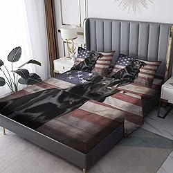 NOGAWA Labrador Retriever Sheets Twin, Us Flag Bed Sheets, Deep Pocket & Soft Microfiber Bedding Sheets & Pillowcases 3 Piece - Fitted Sheet & Flat Sheet & Pillow Case