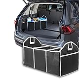 【High Quality Material】: Our foldable car trunk organizer is made of high quality waterproof oxford polyester material which has good abrasion resistance and durability. It is well made and the stitching is firm. Car trunk storage organizer can offer you a long service time. If you want to clean it, any spray cleaner and damp cloth will do the trick 【Lightweight & Foldable】: Its lightweight design allows you to take the car trunk organizer directly to supermarkets, beaches, parks or large sports fields. You can also fold it when not needed. Fully foldable, very portable and easy to carry or store quickly 【Super Large Capacity】: The fully extended dimensions of the automotive trunk organizer is about 21.26''L x 13''W x 9.1''H. There are 3 big compartments, each with plenty of storage space and multiple small pockets on the exterior. And its handle design allows you to pick it up easily. So it brings you a large and more flexible storage space 【Wide Application】: This collapsible car trunk organizer makes car organization easy and simple. It fits all vehicles like truck, SUV, van, jeep, car, great for carrying and organizing groceries, toys, sporting equipment, tools and so on. All your mess can be concealed, goodbye to messy car once and for all 【Ideal Gift Choice】: Offering both quality and practicality for our customers, this storage box is an ideal choice as a thoughtful gift for your loved ones. Whether it's for families, friends or colleagues, this gift is sure to be cherished, especially on festivals or birthdays